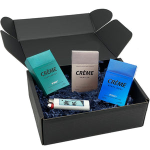 Experience all three of our signature hemp cigarette flavors in this variety bundle. Complete the style with our Palm Lighter made by BIC. CRÈME CBD cigarettes are the world's first sweet-tipped hemp prerolls. Made with ultra-smooth premium hemp, these are a pleasure to smoke, and an ideal replacement for traditional cigarettes, hookah, and vapes. Most of our customers report a rush of relaxation and sense of well being after smoking one of our flavorful hemp cigarettes.